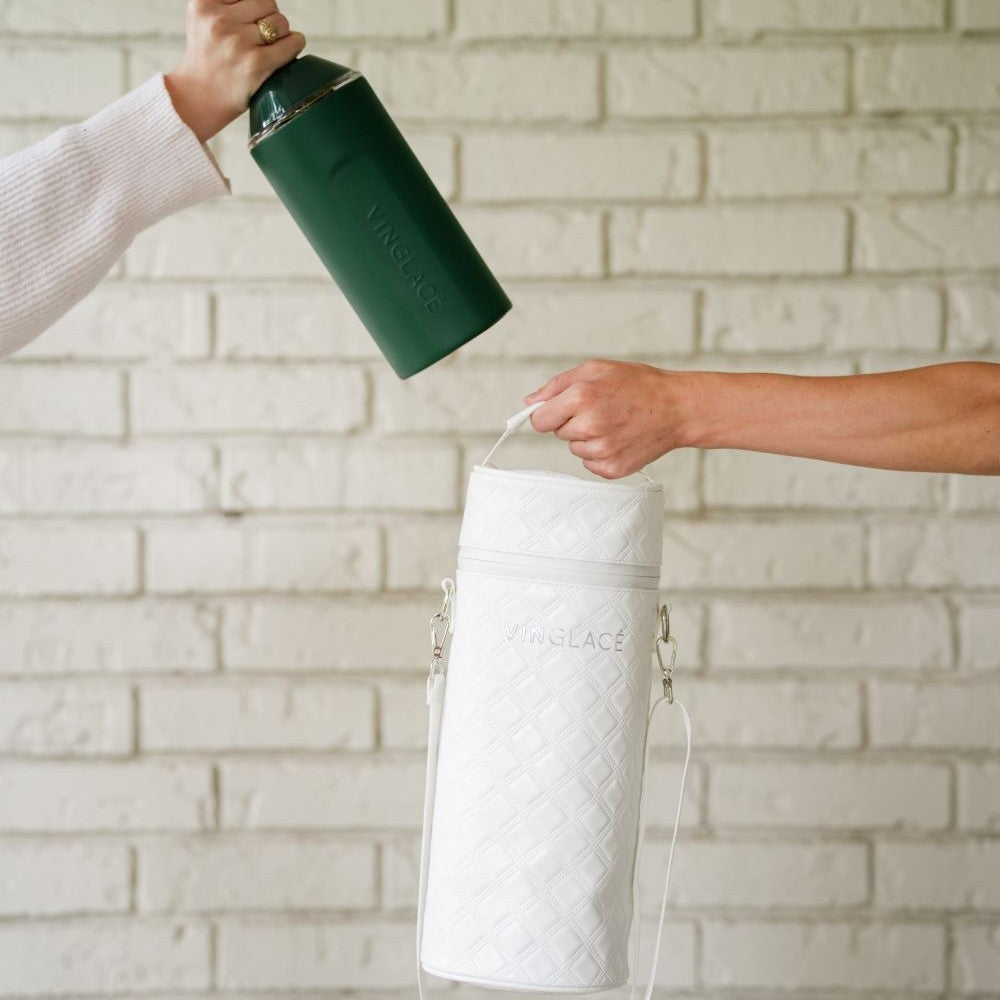 - Transport your Original or Grande wine bottle holder and favorite bottle of wine or champagne in style with this water and stain resistant tote bag.